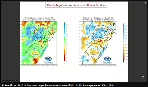As projeções do clima, sinalizadas pelos dados do Instituto Nacional de Meteorologia (Inmet) e do Centro Nacional de Monitoramento e Alertas de Desastres Naturais (Cemaden) apontam para um período de chuvas irregulares, com expectativa de precipitações abaixo da média histórica em grande parte da Bacia — o que reforça a necessidade de manutenção e intensificação de medidas de gestão.